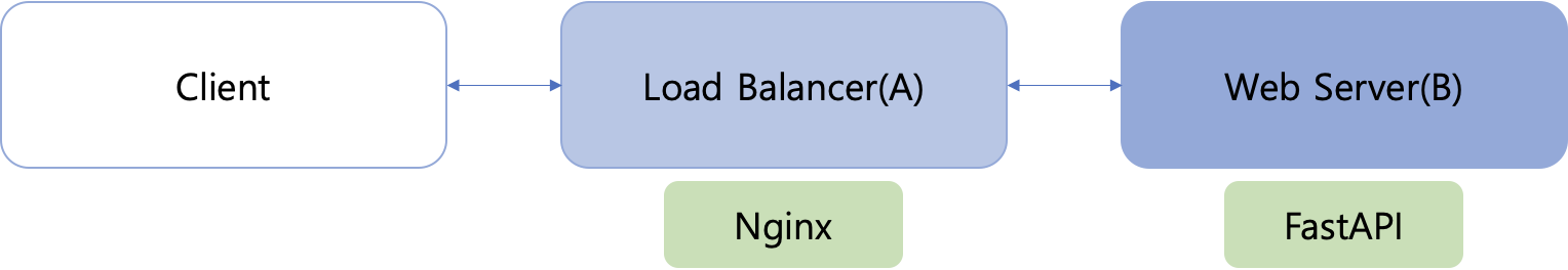 간단한 웹 데모를 개발하면서 겪었던 과정을 정리하고자 한다. 전체적인 구조는 다음과 같으며 Load Balancer(A)와 Web Server(B)는 별도의 서버로 구성하였다.