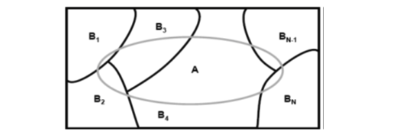 $B_{1}, B_{2}, \cdots, B_{N}$의 합집합이 표본 공간이며 서로 상호배타적(서로 독립)인 사건이라고 할때, 표본 공간 $S$의 분할 영역으로 이들 집합을 나타낼 수 있다.