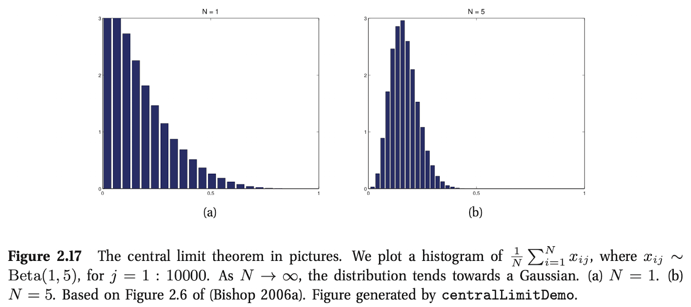 - marginal distribution: $p(A)=\sum_{b}p(A,B) = \sum_{b}p(A|B=b)p(B=b)$ (rule of total probability)