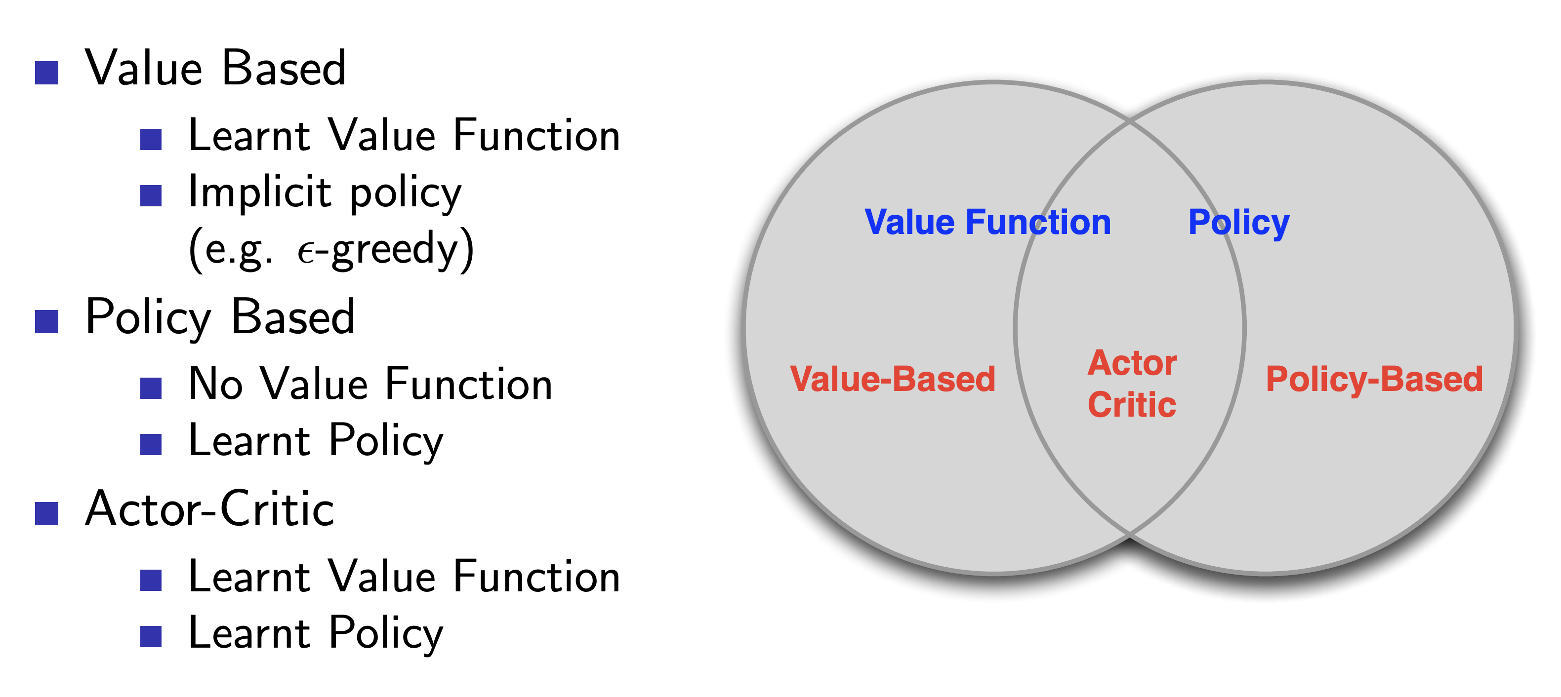 - Critic: Updates action-value function parameters $\color{red}\mathrm{w}$